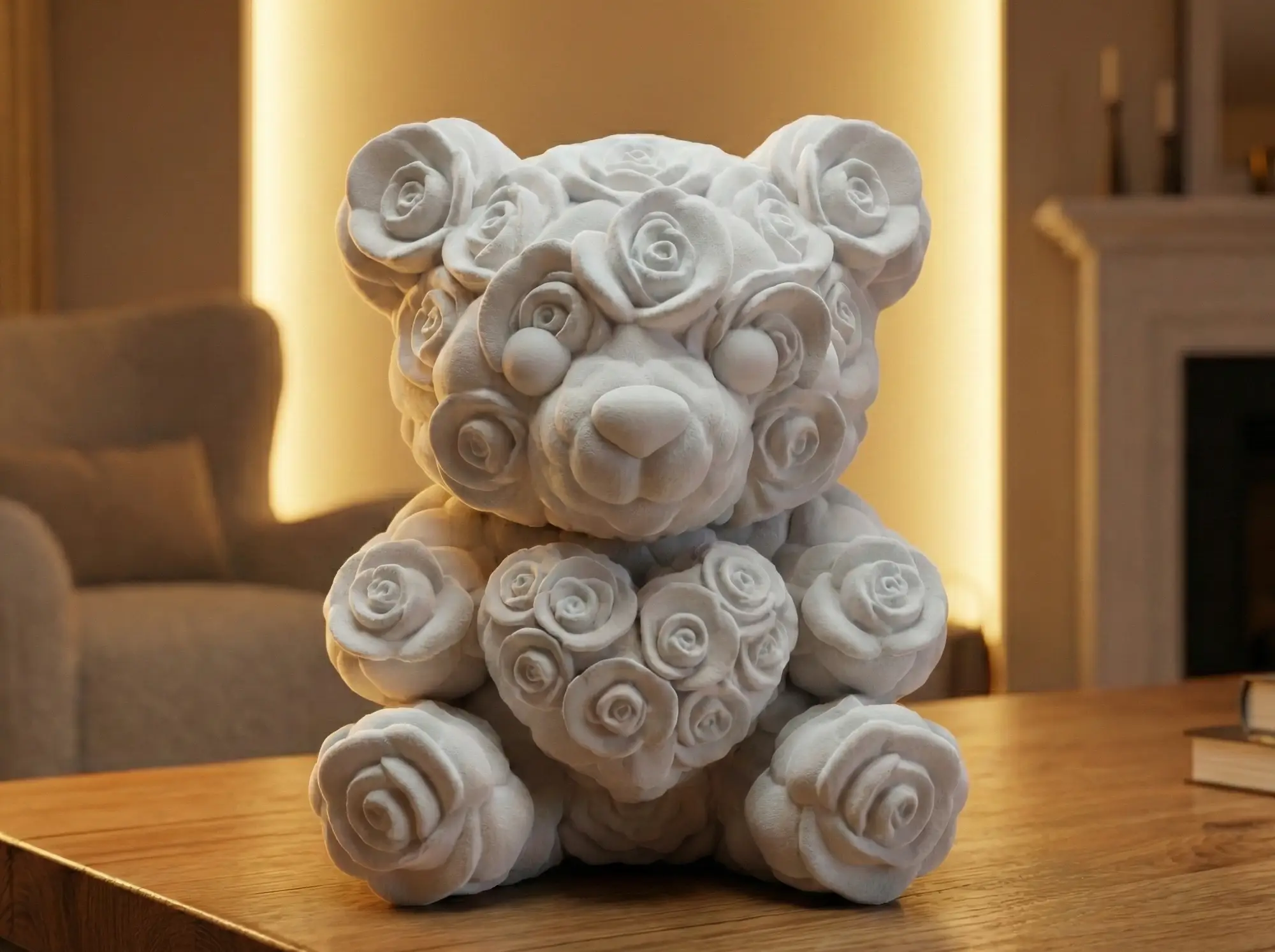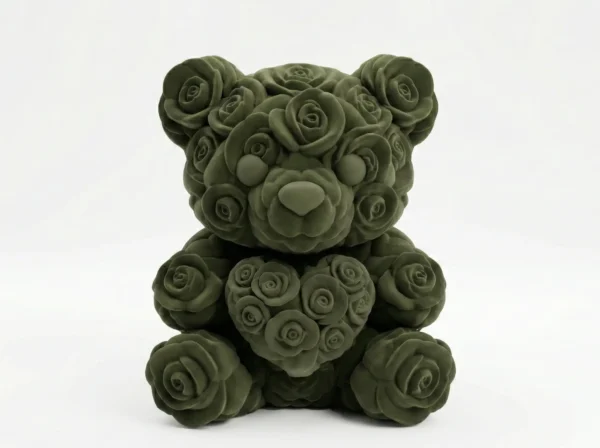 Ursuleț Decorativ 3D cu Trandafiri – Compozit Premium